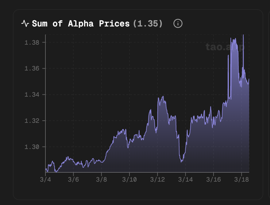 Think of this as the macro sentiment indicator for the entire subnet ecosystem. It tells you whether the market collectively values subnets above, below, or in line with TAO itself.