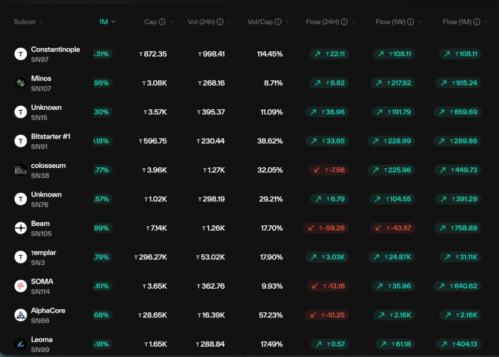 - Dig into the “why.” Is the subnet shipping new features? Did it onboard a major miner? Is a narrative forming? Flow without substance is just speculation, and flow backed by real progress is where conviction builds.