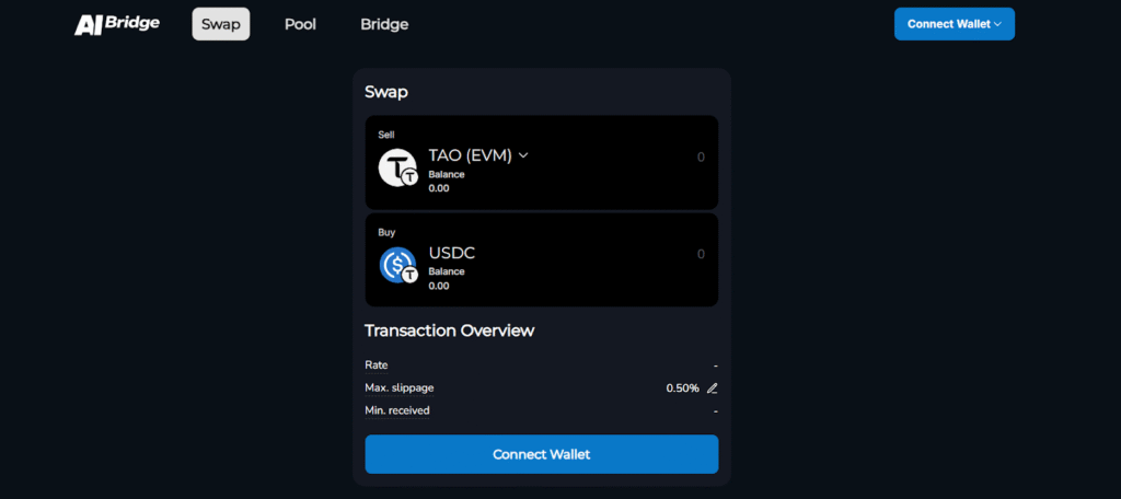 b. Seamless routing through a $TAOβ$USDC liquidity layer,