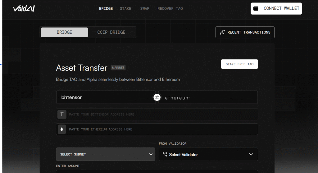 VoidAI (Subnet 106) transforms liquidity into a measurable, incentivized output by bridging Bittensor with Solanaβs DeFi ecosystem. Through a cross-chain bridge and wrapped $TAO, miners provide liquidity on Solana AMMs like Raydium, stake LP tokens, and earn rewards based on verified contributions.