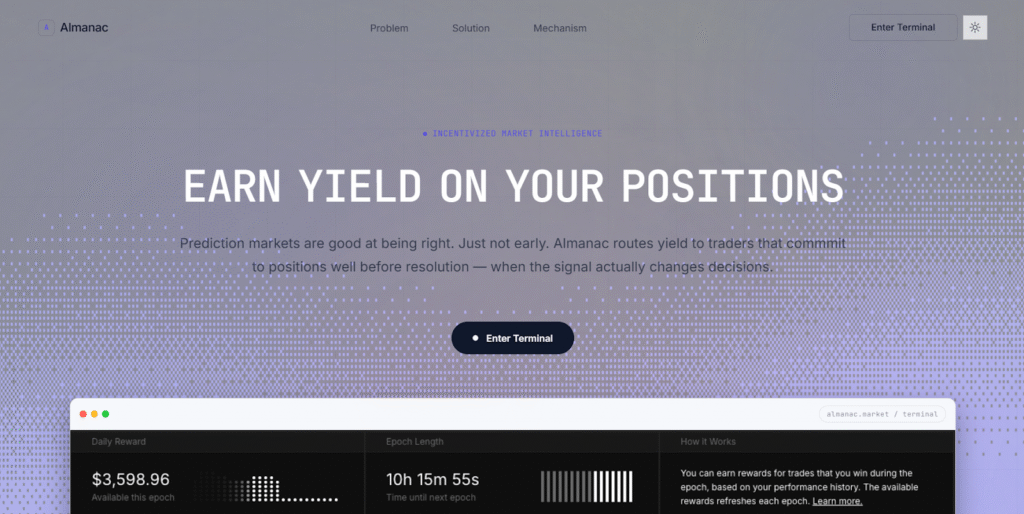 Almanac reframes prediction as something measurable, competitive, and economically meaningful. It is a market for truth under uncertainty.