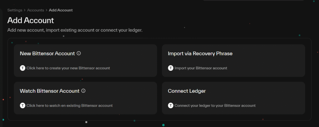 The TaoStats wallet is designed with simplicity and functionality in mind. Getting started is straightforward:
