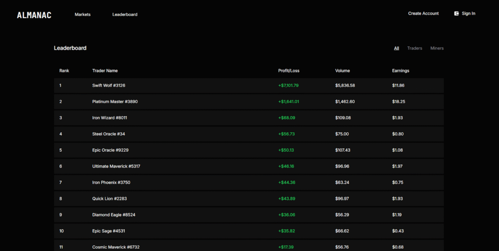 Almanac offers a direct way to turn intelligence into measurable rewards for everyone (miners, traders, researchers, or market enthusiasts).