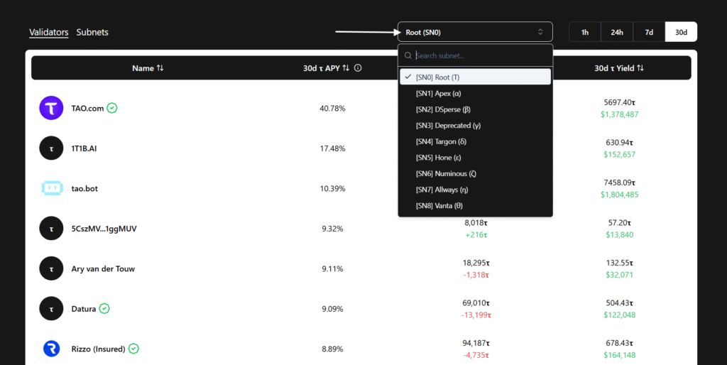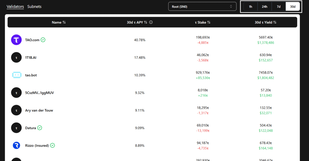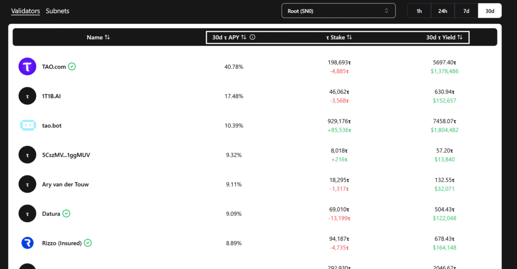 Tracking this manually across dozens of subnets and validators is not realistic. Hence, Tao Yield as a tool that consolidates everything into one clean interface, is a very good resource for tracking yields.