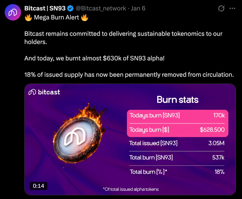Additionally, the subnet has conducted periodic manual token burns, further reducing circulating supply.