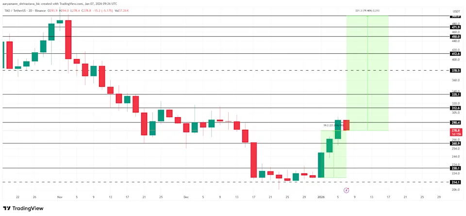 However, downside risks remain. A resurgence in selling pressure could push TAO back below $263. A deeper move toward $217 would invalidate the current recovery attempt and reset the bullish thesis.