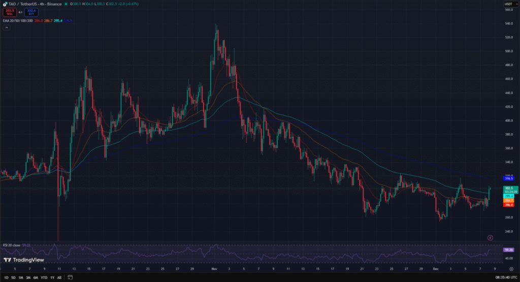 $TAO entered November under downward pressure, falling from about $350 to the $250 range. That trend, however, shifted sharply as halving anticipation intensified.