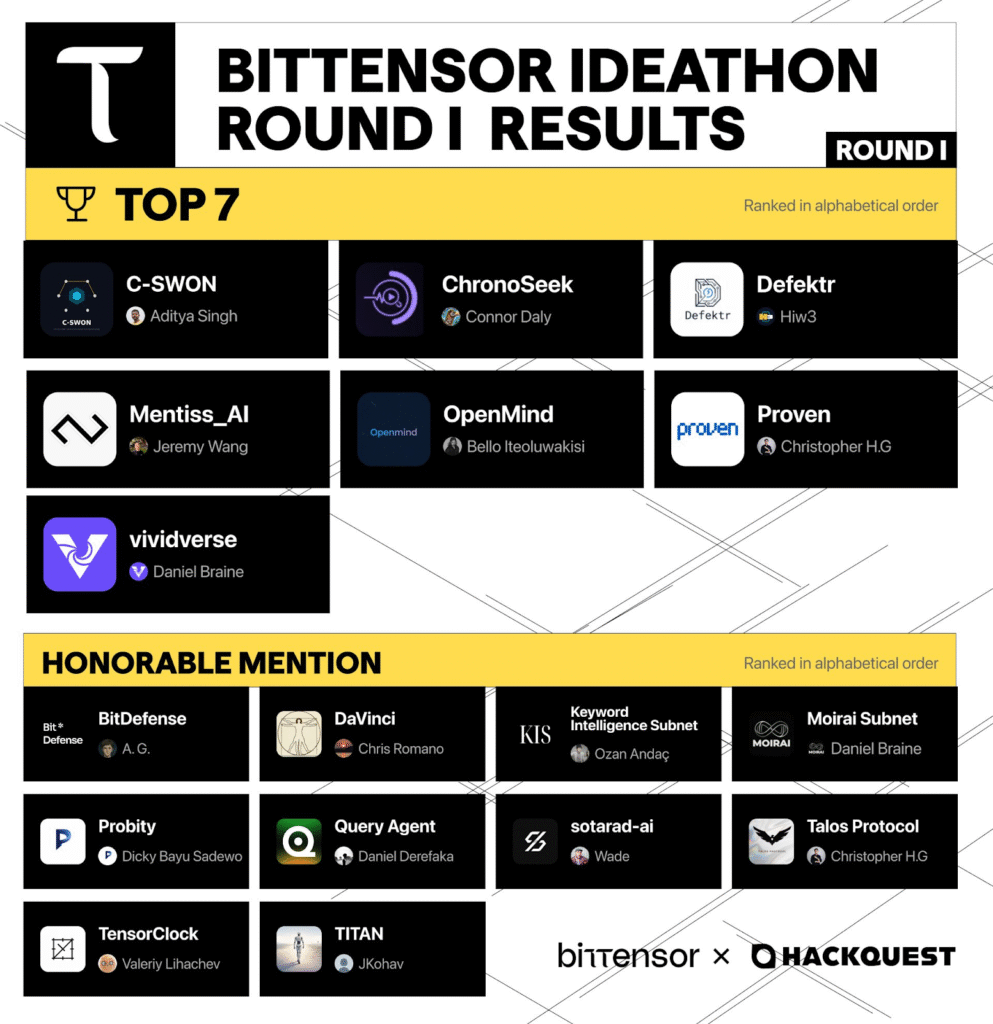 Together with the Top 7 teams, these builders represent some of the most promising subnet concepts emerging from the ideathon.