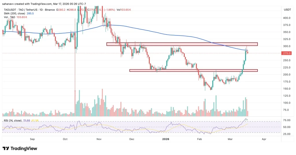 Bittensor ($TAO) has delivered a powerful recovery in recent sessions, climbing from the $150 region to test the $300 level.