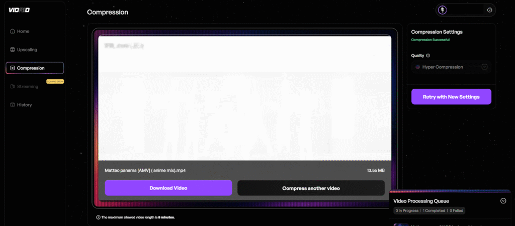 5. Vidaio does the backend runs and delivers a top-notch downloadable video file!
