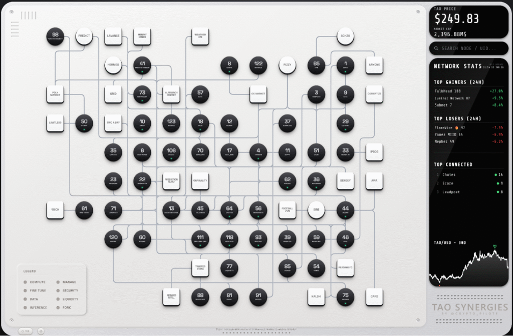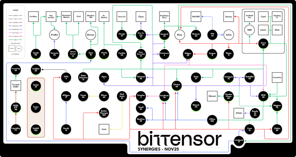 Crypto Pilote’s newly released Subnet Synergies Map offers one of the clearest pictures yet of how decentralized intelligence on Bittensor is interconnecting.