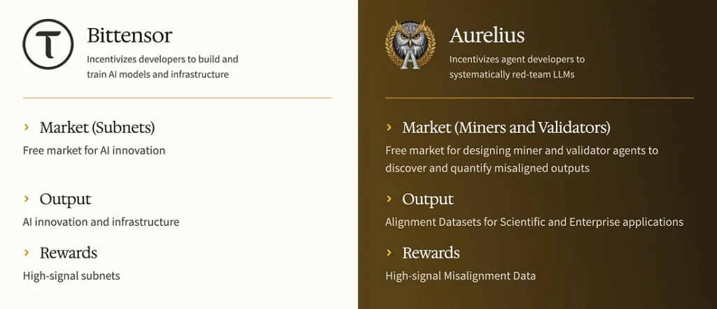 Aurelius aims to decentralize this process entirely. By using miners and validators on Bittensor, the subnet transforms alignment into an open competition. Miners generate and test synthetic data, while validators assess it using constitutional frameworks which are synonymous to ethical “rulebooks” that capture principles like honesty, fairness, and non-harm.