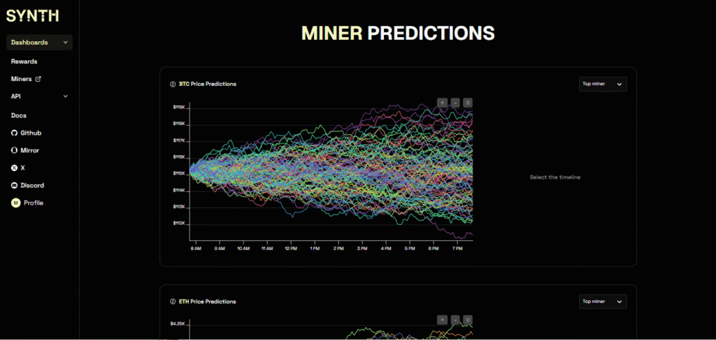 - Mixing Signals & Models: You can pipe Synth outputs into bigger systems: overlap with on-chain info, sentiment, volume, to increase prediction accuracy.