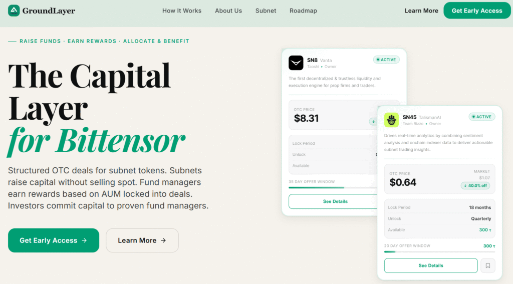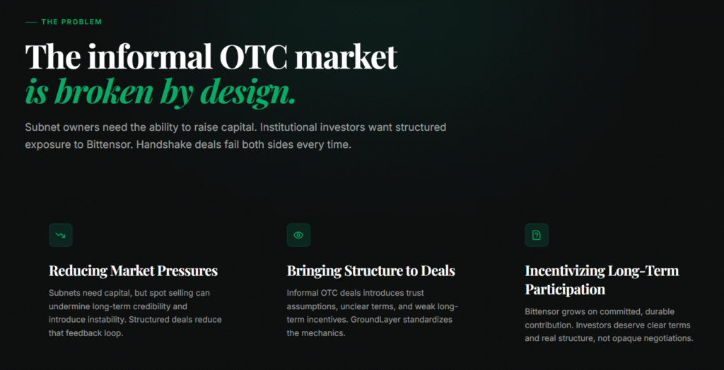 By embedding structured OTC infrastructure directly into Subnet 20, GroundLayer creates the conditions for scalable, institutionally compatible growth.
