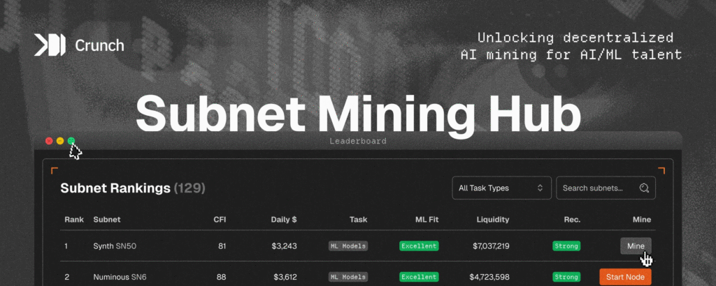 CrunchDAO recently announced efforts to bring subnet mining to its community of: