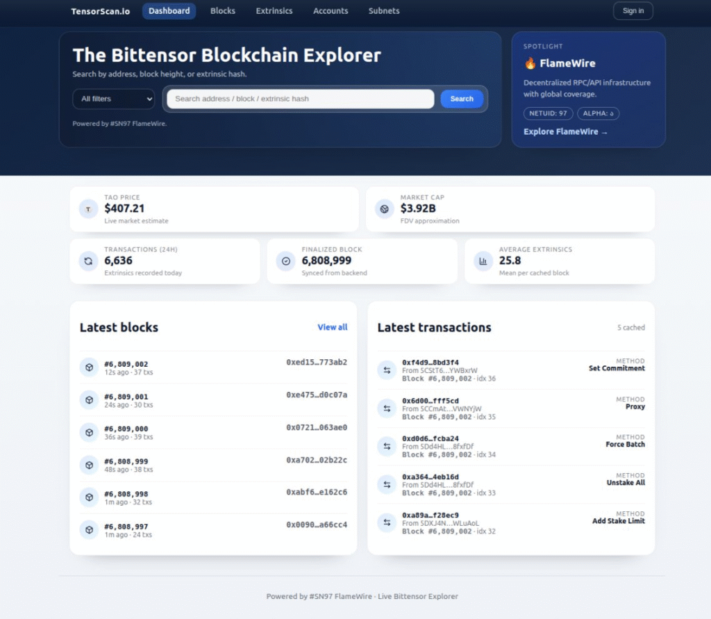 1. FlameWire RPC — The decentralized Infura for Bittensor