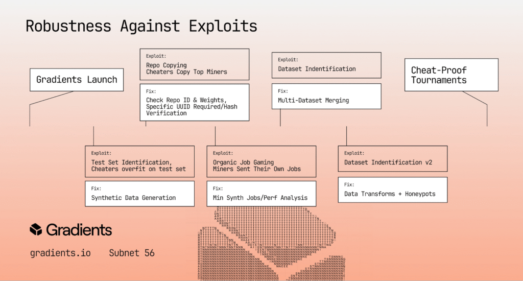 In the beginning, some miners discovered the original datasets and trained directly on the test data. Gradients fixed this by generating synthetic datasets using large language models that mimicked the same data distribution but were impossible to identify.