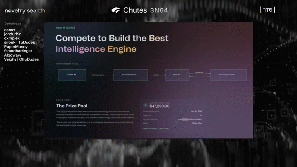 To make this competitive, they created a prize pool that currently sits at over 47 thousand dollars. If a miner can beat the current best-performing system, they win the entire pool. Then someone else tries to beat them. It’s king of the hill, but for AI performance. This forces constant improvement without anyone telling miners what to do.
