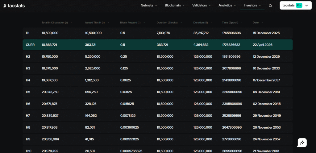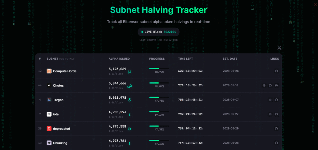 For HODLers with exposure to specific subnet β$ALPHAβ tokens, tracking each subnet’s issuance milestone is as important as tracking the network-wide $TAO supply, since an $ALPHA halving can significantly alter the return profile of a subnet position regardless of what $TAO is doing at the network level.