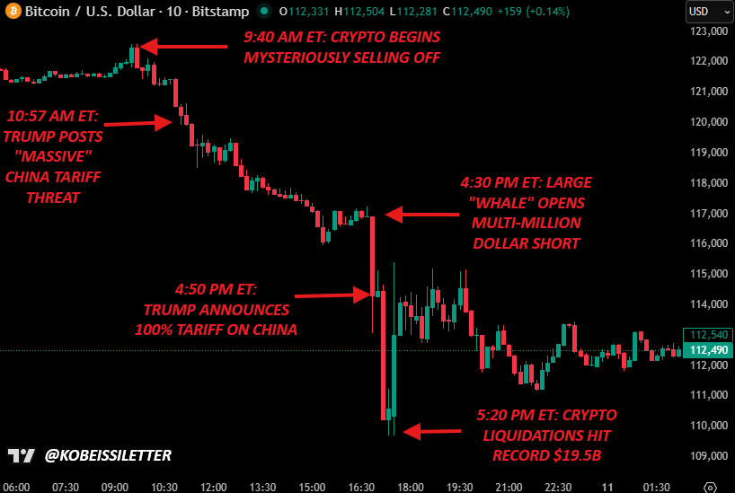 By 5:20 PM ET, just 30 minutes after Trump’s announcement, $19.5 billion in liquidations had occurred.