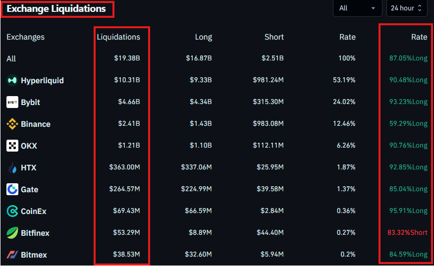 Over $19 billion worth of leveraged crypto positions were wiped out within 24 hours — nine times the previous record.
