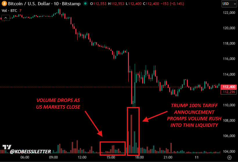 Trump’s announcement came 50 minutes after U.S. markets closed on Friday, a notoriously low-liquidity period for crypto.