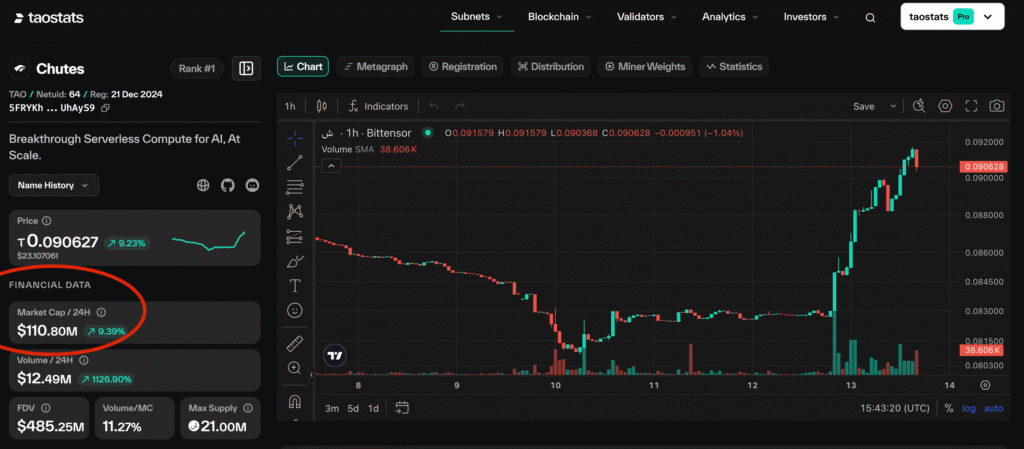 Chutes’ current market capitalization, roughly $110 million via its subnet alpha token, is orders of magnitude below competitors serving comparable or smaller inference volumes. Several centralized inference providers are valued in the tens of billions (ordinary people do not have access to invest in most of them in the early stages). Yet Chutes is leading its peer group by volume on the largest open marketplace (Open Router), and is fully investable by anyone through $TAO.