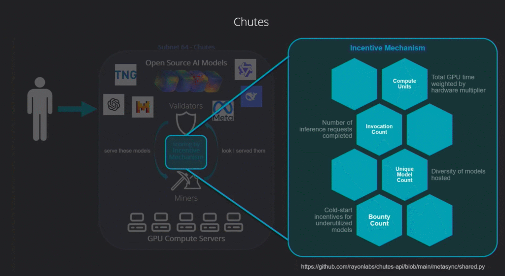 The system also includes bounty mechanics. When a new open-source model is released and the community wants it available on Chutes, miners race to be the first to serve it. The hype cycle in AI moves fast, and the incentive structure rewards speed of adoption.