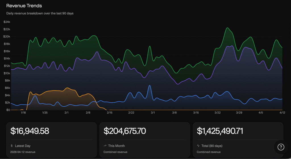 Currently, about 50 different miners contribute compute to Chutes, running thousands of GPU instances that include top-tier hardware like NVIDIA H200 and B200 cards. The network’s revenue, while still early, is on a clear upward trajectory since Chutes began charging for inference.