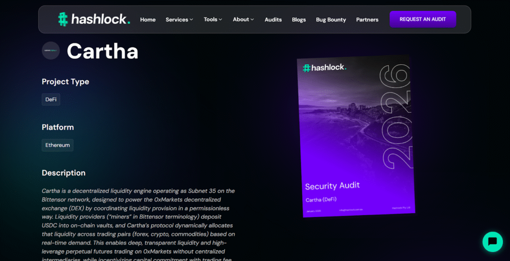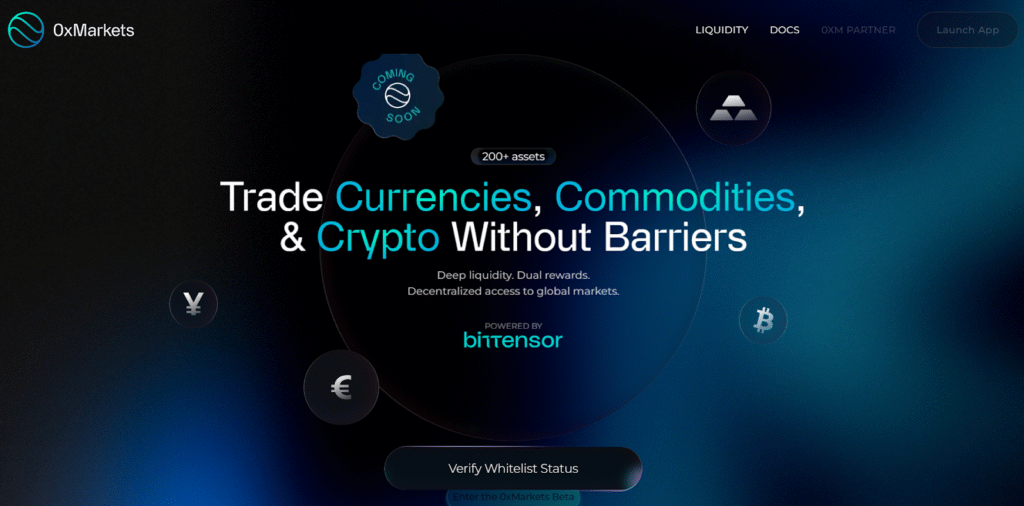 Built on Bittensor, Cartha serves as the decentralized liquidity backbone for 0xMarkets, a perpetual futures exchange where traders can access up to 500x leverage across cryptocurrencies, commodities, and foreign exchange pairs.
