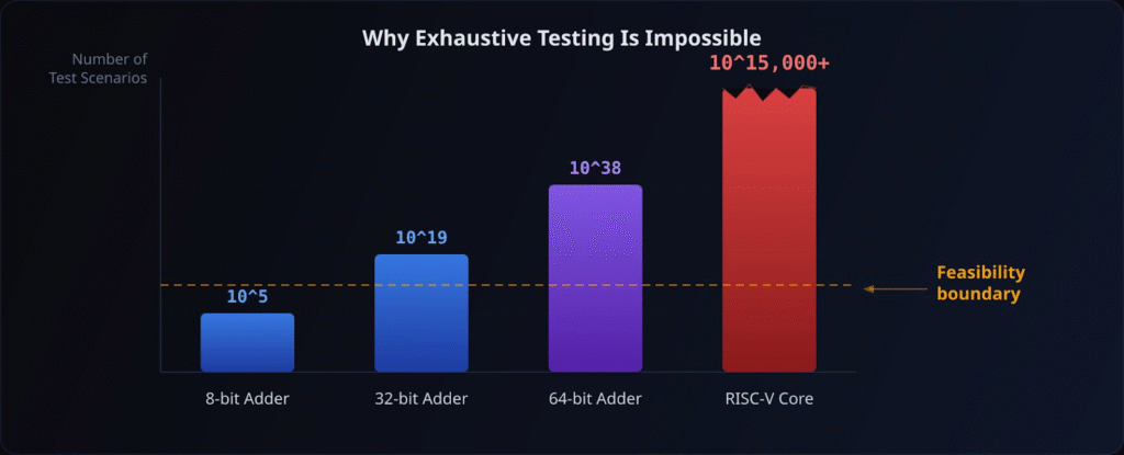 At this scale, exhaustive testing becomes impossible, which means validation must rely on smarter strategies rather than brute force.