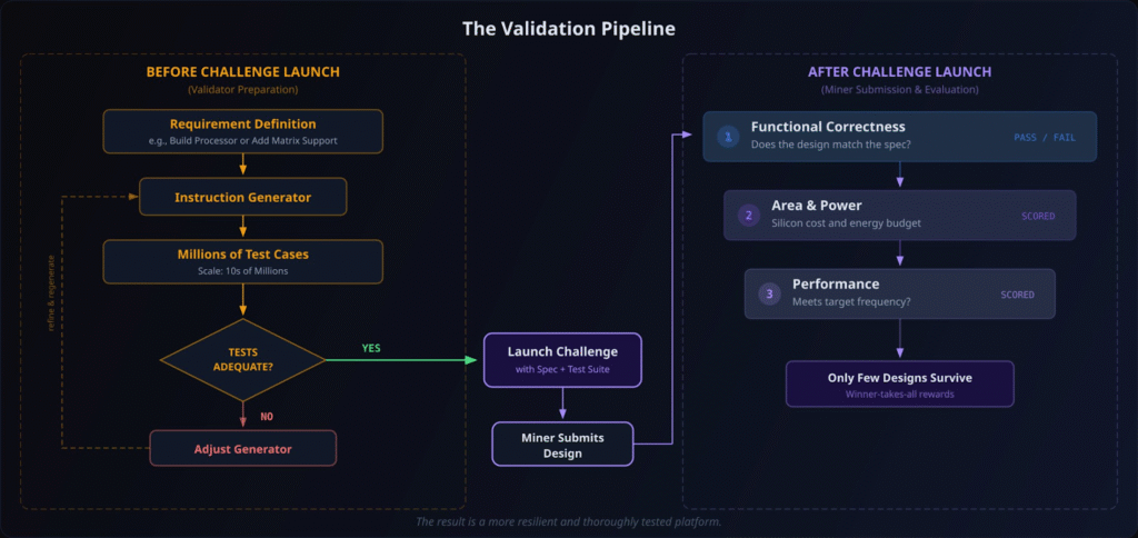 This distinction is not subtle, because in hardware, validation is the work. Without a reliable way to measure correctness, performance, and efficiency, a challenge does not produce value, it produces noise.