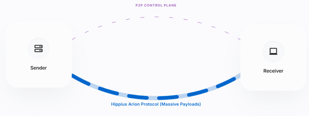 Hermes is powered by the Hippius Arion Protocol and its Sync Engine. The system supports two distinct data paths depending on what you are sending.
