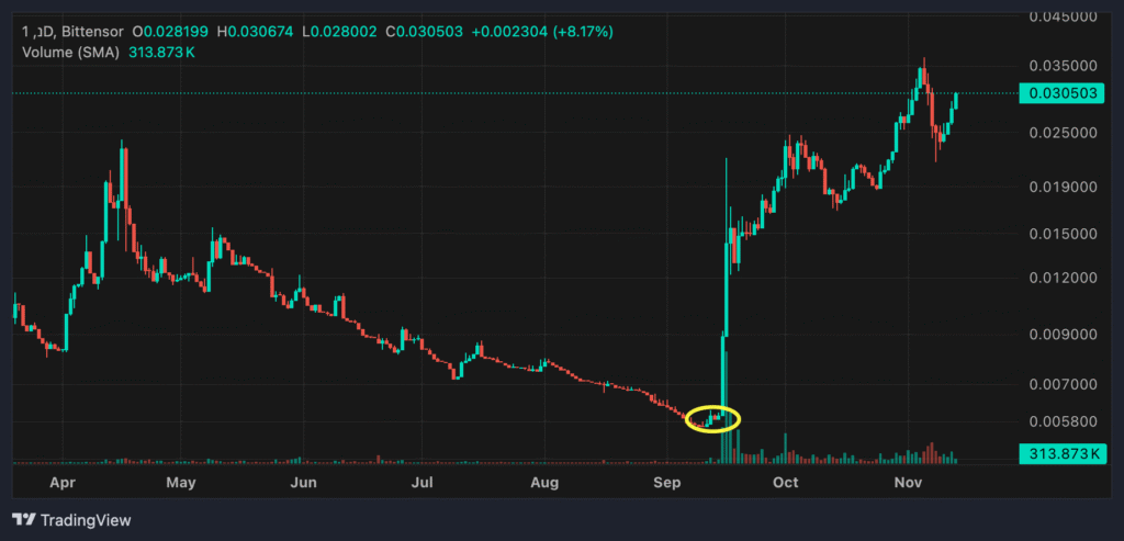 The Bittensor market is event-driven. Subnets can rally 2×–10× off a single announcement or shift in ownership.