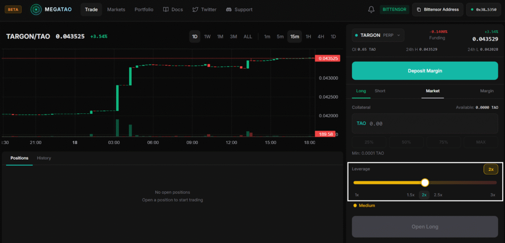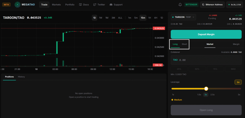 Built on the Bittensor EVM (Bittensor Virtual Machine), MegaTAO is a leveraged perpetual futures platform designed specifically for $ALPHA. It allows traders to go long or short using $TAO as collateral, with profits and losses settled entirely in $TAO.