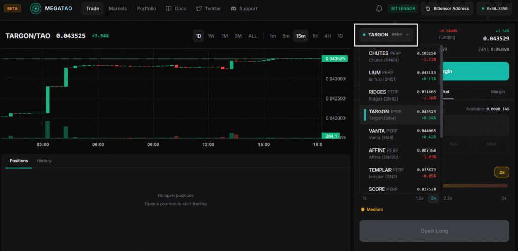 MegaTAO is a decentralized perpetual futures platform for $ALPHA (Bittensor subnet tokens).