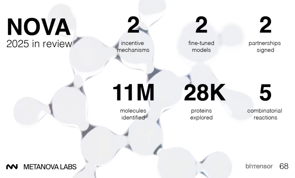 Launched by Metanova Labs on Bittensor’s Subnet 68, NOVA has evolved in less than a year from a proof of concept into a continuously running discovery engine.