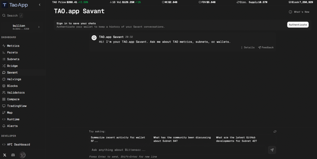 Right there, Savant was no longer just part of TAO.app, it had become a gateway to the ecosystem itself.