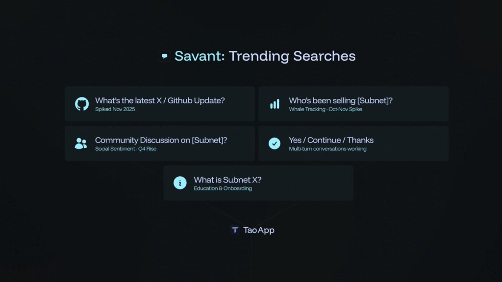In October, Savant gained the ability to read subnet GitHub repositories. Almost immediately, developers and investors began using it for due diligence. Instead of scanning commits manually, they asked simple questions like whether a team was actively shipping code.