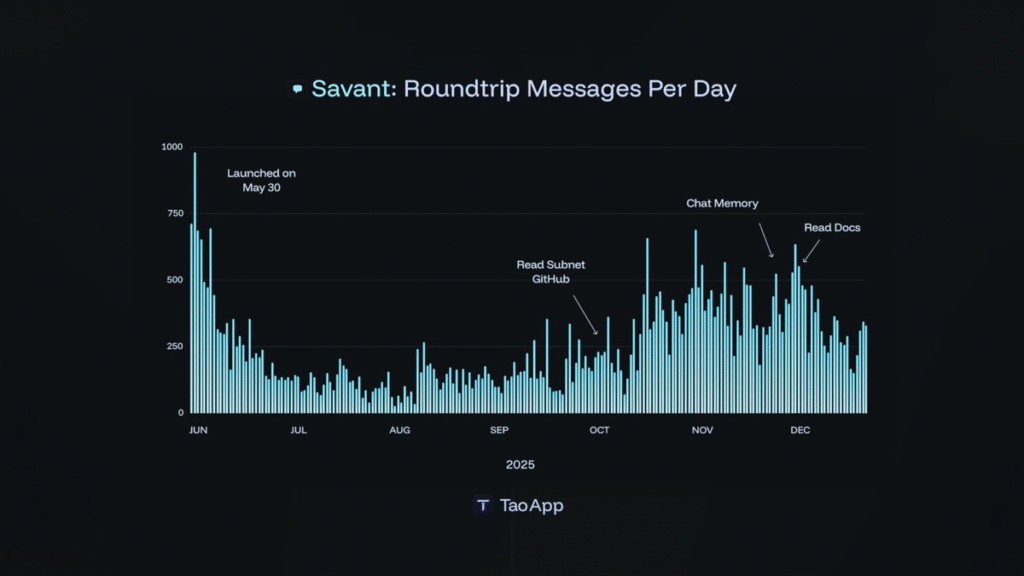 In December, Savant reached another milestone, it was referenced directly by the Opentensor Foundation as a way to easily explore Bittensor documentation. That mention quietly confirmed what many users already felt.