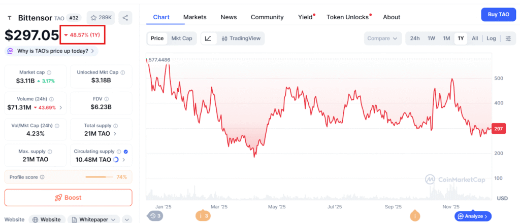 $TAO has struggled over the past year, falling roughly 47% amid a broader period of weakness across crypto markets. The halving introduces a structural change that many investors believe could alter that trajectory over time.
