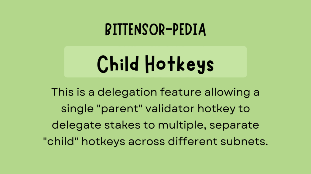 c. Child Hotkeys are Worth Implementing From the Start: Distributing stake to child hotkeys lets you manage validation across multiple subnets without exposing your parent coldkey to the operational risks that come with daily subnet activity.