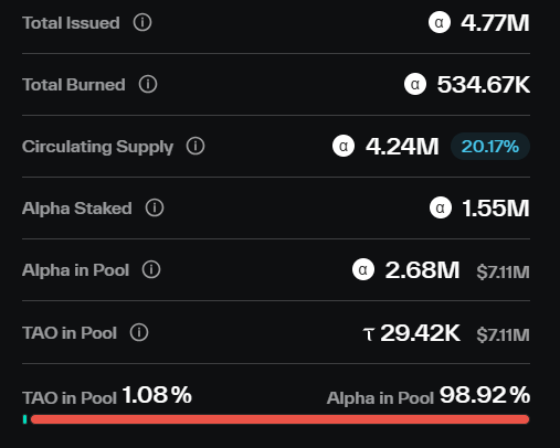 5. Pool balances in $ALPHA and $TAO reveal the liquidity backing the market.