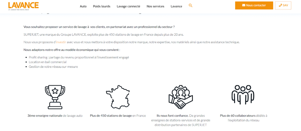 Founded in 1979, Lavance has built its leadership on end-to-end control of the wash ecosystem. Today, the group brings together more than 300 specialists across equipment distribution, installation and maintenance services, and direct station operations under the Superjet brand.