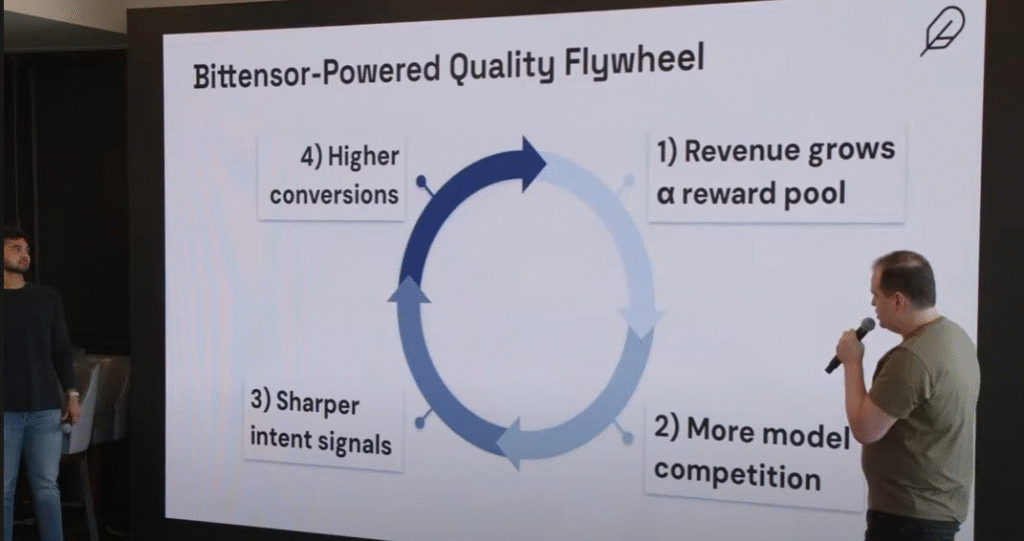 Leadpoet relies on a powerful flywheel: more revenue increases the reward pool, which attracts more AI models, improves intent signals, increases conversions, and generates even more revenue.