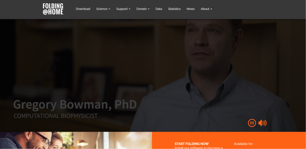 In 2020, at the height of the global pandemic, over a million individuals contributed computing power to Folding@home, collectively pushing the network past the exaflop (a measure of performance for a supercomputer that can calculate at least one quintillion floating point operations per second) barrier and accelerating research into COVID-19.