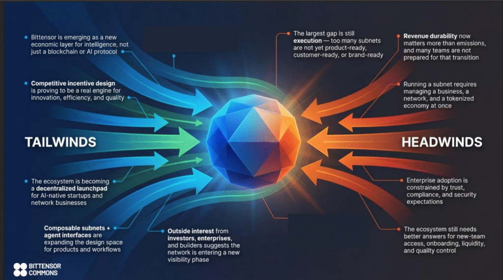 The event arrived at a pivotal moment for the network. Bittensor now runs more than 100 subnets. A decentralized 72-billion-parameter language model trained on the protocol recently made headlines. Institutional attention is no longer hypothetical; it is here. The question facing the room was not whether momentum exists, but whether the community can channel it.