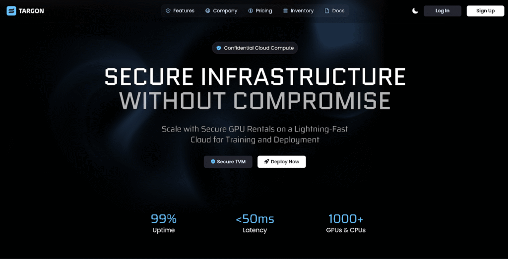 Targon claims over 1,000 GPUs and CPUs available across their network. They report 99% uptime, meaning the service is available almost all the time. Response times are under 50 milliseconds, which is fast enough for real-time AI applications.