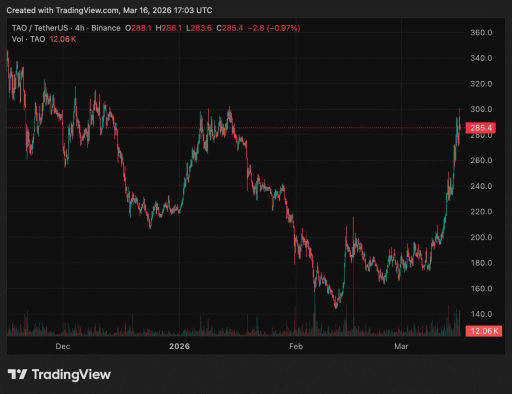Something unusual is happening with Bittensor. Over the past several weeks, TAO has roughly doubled in price from the low $140s to +$290, making it one of the strongest performers in crypto during a period when most assets have been grinding sideways. That kind of move demands an explanation. Not a single explanation, really, but a stack of them, because no 100% rally in a mature protocol happens for just one reason.