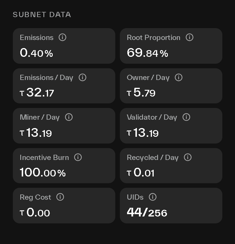 Alpha holders earn a share of the subnet’s emissions, currently around 0.4% of network emissions, or about 0.01 TAO recycled daily. This comes from Bittensor’s reward system for active subnets.